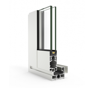 Sistema abisagrado de 54 mm de profundidad de marco con rotura de puente térmico de 24 mm y una capacidad máxima de acristalamiento de 41 mm;
